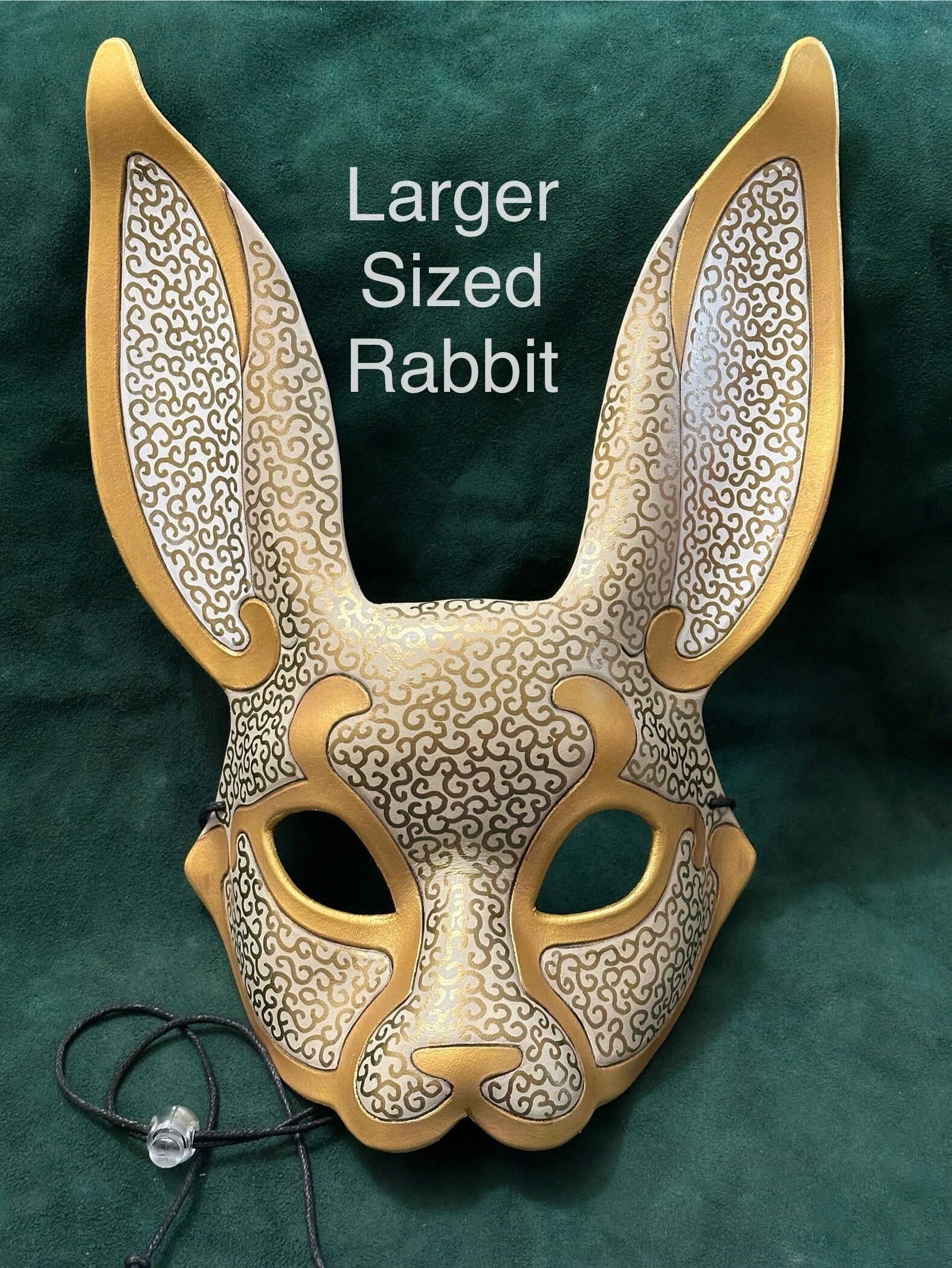 He wears a silver fox half-mask that does not conceal his mouth and mustache.