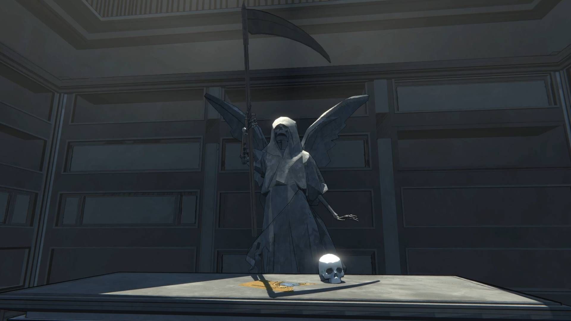 It looks much the same as they left it, though the makings of a masquerade are no longer arranged as finely, a few scorch marks here and there, and for some reason there’s some amazing optical illusions on the floor panelling that makes them look like actual manhole covers. Alas, no sewers lay beneath. It may still take Actors a bit of time to shake off the old-new memories, and for some reason the fluorescent lighting seems harsher on the skin than it has any right too. Good thing that the stacks cast long shadows.